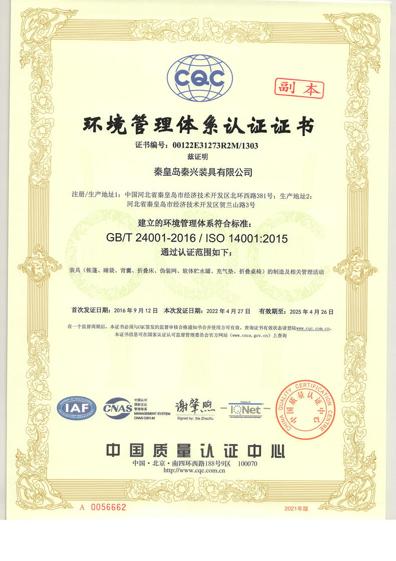 • 環(huán)境管理體系認(rèn)證證書